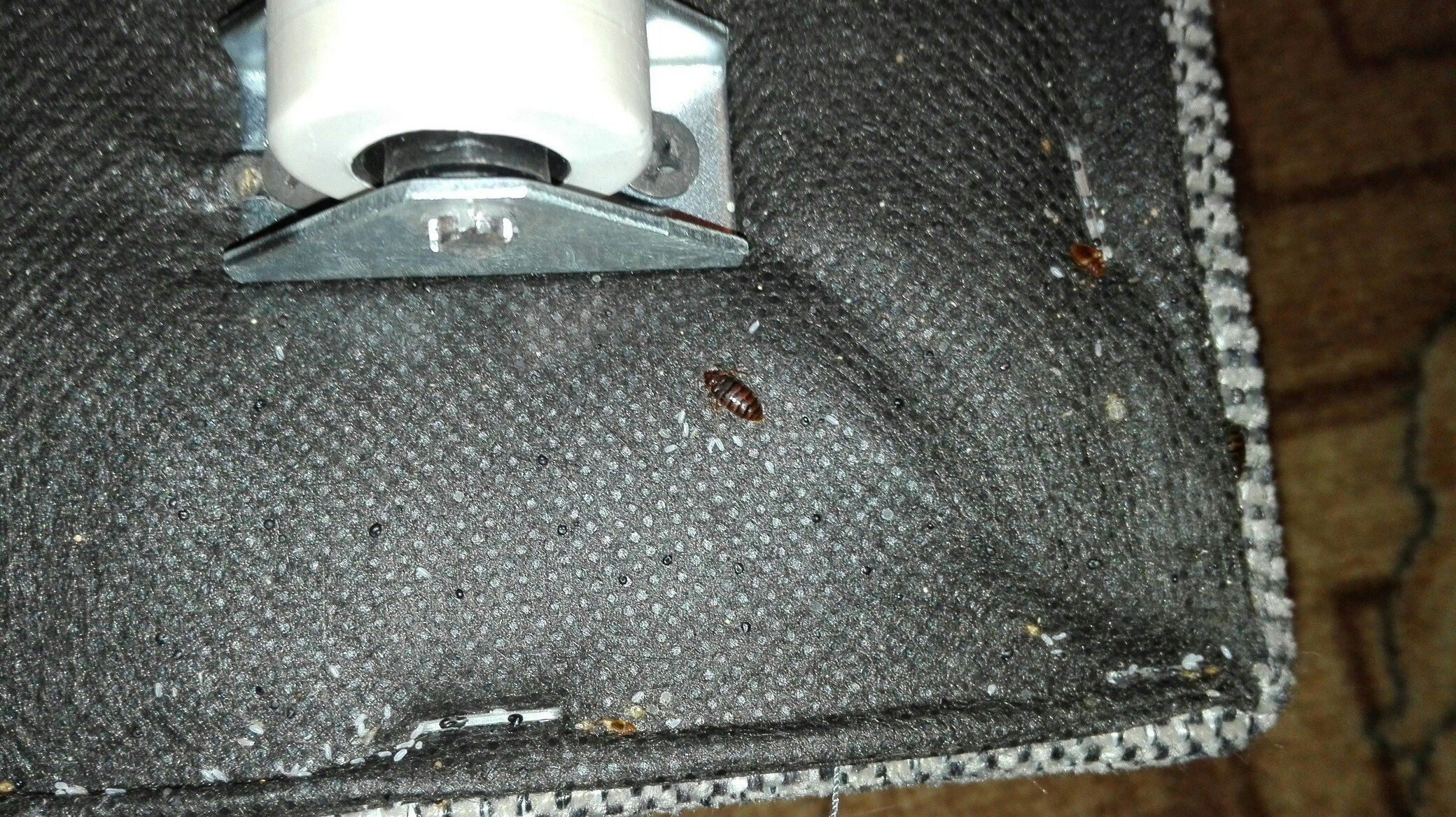 - Осмотрите Ваше спальное место. Загляните во все мельчайшие щели, трещинки и швы. Если Вы обнаружите там «черные точки» — это продукты жизнедеятельности насекомых. Цисты.